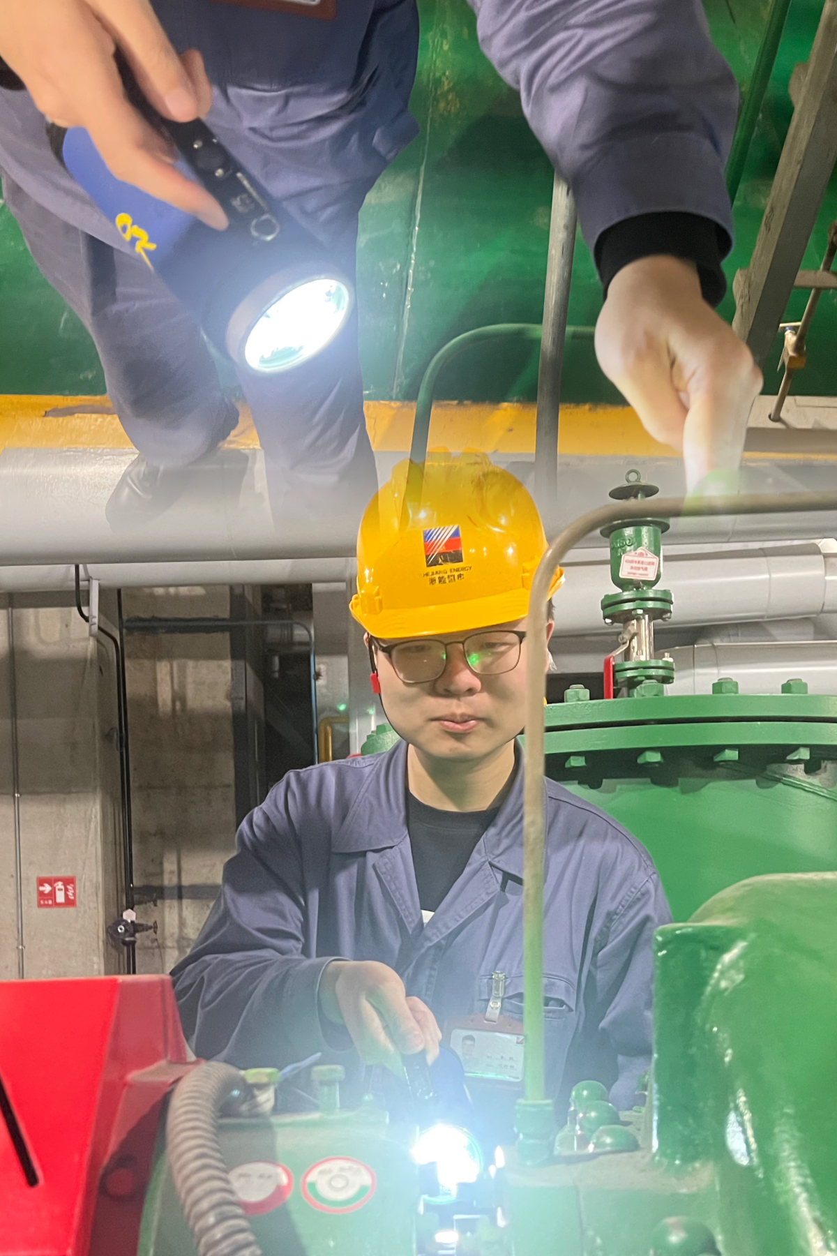 每天對電廠設備進行巡查巡視,保證機組安全穩定運行,守護萬家燈火,是發電廠運行崗位的工作職責之一。在精細巡檢過程中,運行人員李航時刻保持著專注,用手中的手電筒反復照亮回水鏡,仔細檢查前置泵冷卻水回水情況。“干一行就要了解一行,只有對設備了如指掌,才能守護好它們。”李航說道。