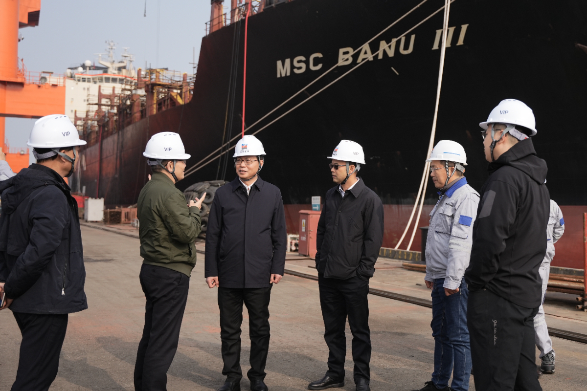 集團(tuán)黨委書記、董事長劉盛輝深入浙能邁領(lǐng)船舶綠色改造維修基地等現(xiàn)場(chǎng)調(diào)研。 徐晶晶 攝