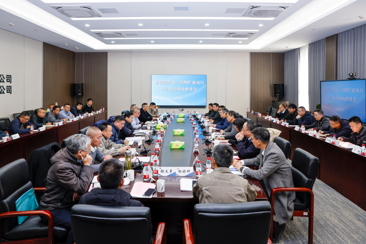 集團黨委委員、副總經理柴錫強參加推進會,集團相關部門、浙能電力及項目建設相關單位主要負責人參加會議。