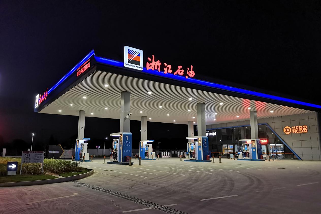 浙江石油圖影綜合供能服務站的夜景。 林旭朝 攝