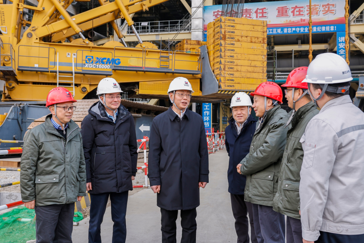 集團黨委書記、董事長劉盛輝深入嘉電四期擴建項目9號機組建設(shè)現(xiàn)場調(diào)研。 王侃 攝