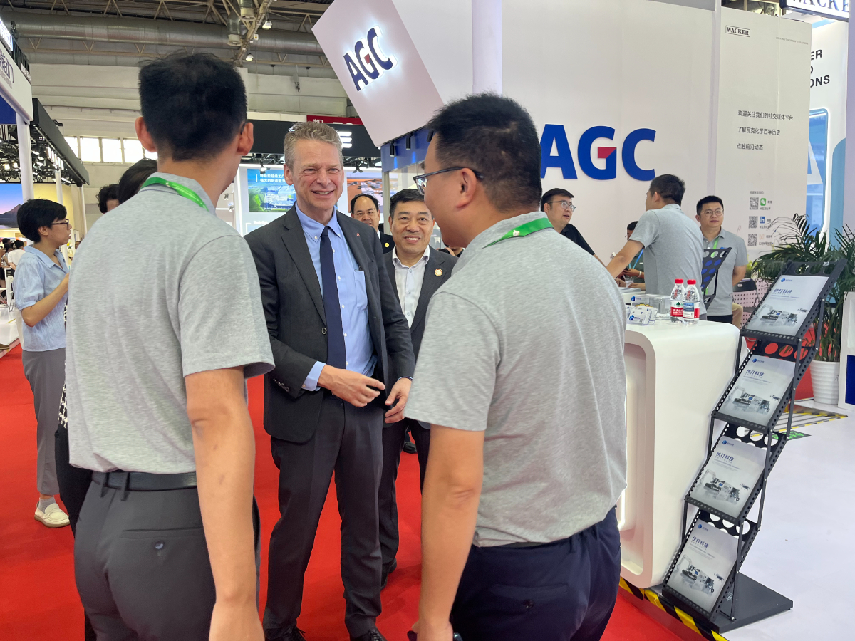 奧地利駐華使館商務處商務參贊樂思華,ADVANTAGE AUSTRIA Beijing (Austrian Embassy Commercial Section), Commercial Counselor Franz Roessler參觀伏打科技展臺。 高明娟  提供