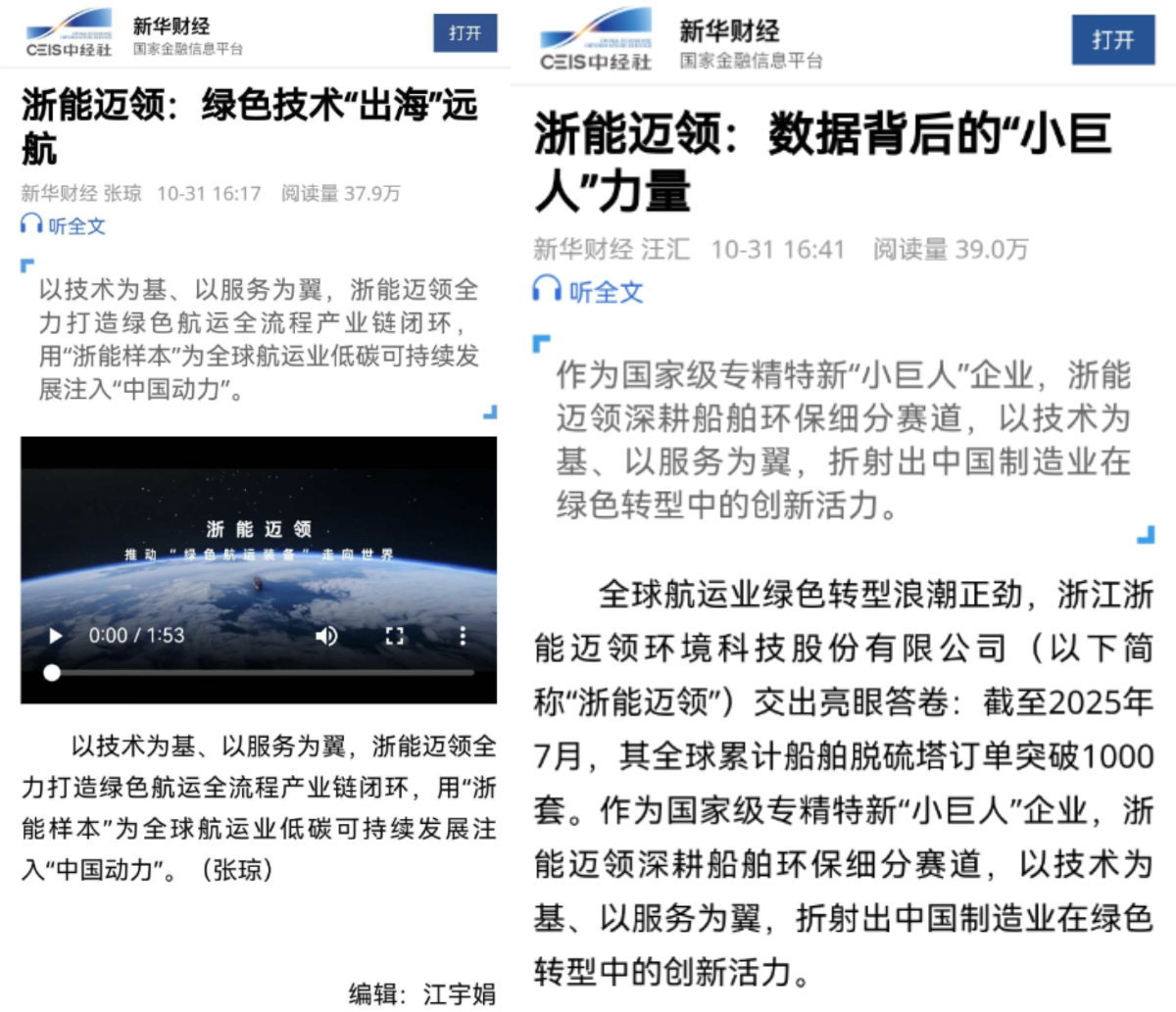 刷屏!新華社報(bào)道浙能邁領(lǐng)推動(dòng)“綠色航運(yùn)裝備”走向世界