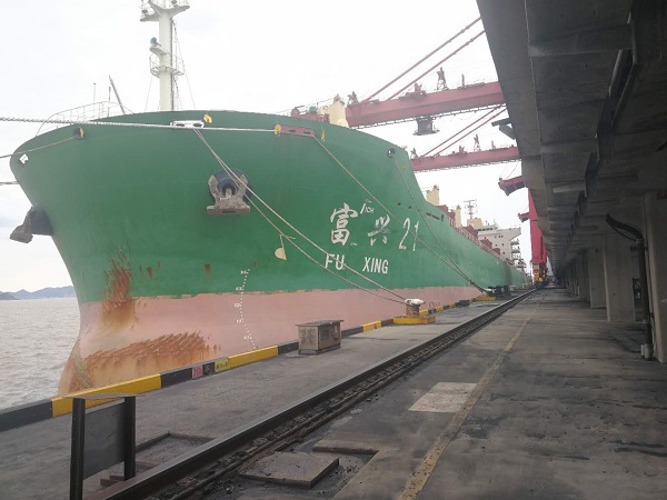 交貨的富興21輪靠卸舟山煤電碼頭。浙能舟山煤電公司 提供