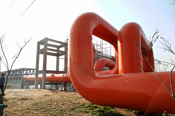 3月10日,濱電每小時(shí)供熱平均流量再創(chuàng)新高,圖為濱電供熱管道。 徐明敏 攝