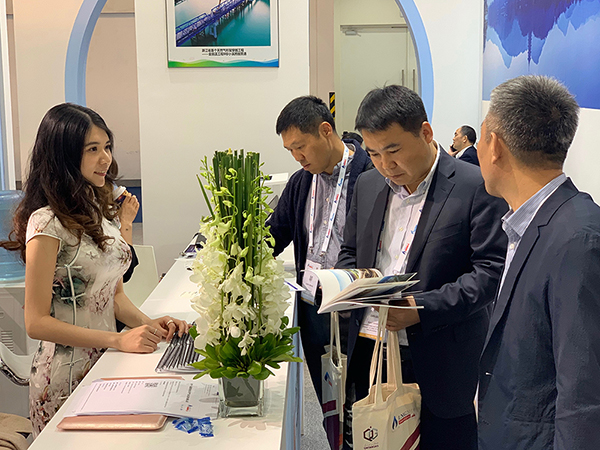 浙能集團(tuán)展廳內(nèi),超大的LED顯示屏、大氣的墻面宣傳版面,小橋流水,中西合璧,配上燈箱等小幅宣傳版面、立柱形象墻,賞心悅目的茶道表演吸引了眾多參展商的駐足。兩位現(xiàn)場(chǎng)講解員流利清晰、細(xì)致到位的講解也讓參觀者更詳細(xì)具體地了解浙能天然氣產(chǎn)業(yè)的成長歷史和發(fā)展?fàn)顩r。