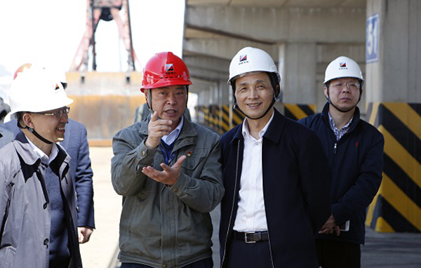 陳月亮一行在浙能港口公司調研卸船碼頭生產經營情況。李晨 攝