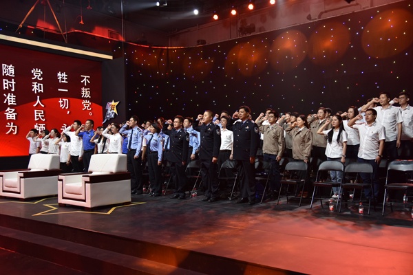 浙能集團本部及天地環保公司部分黨員參加節目錄制,接受現場教育,并重溫入黨誓詞。