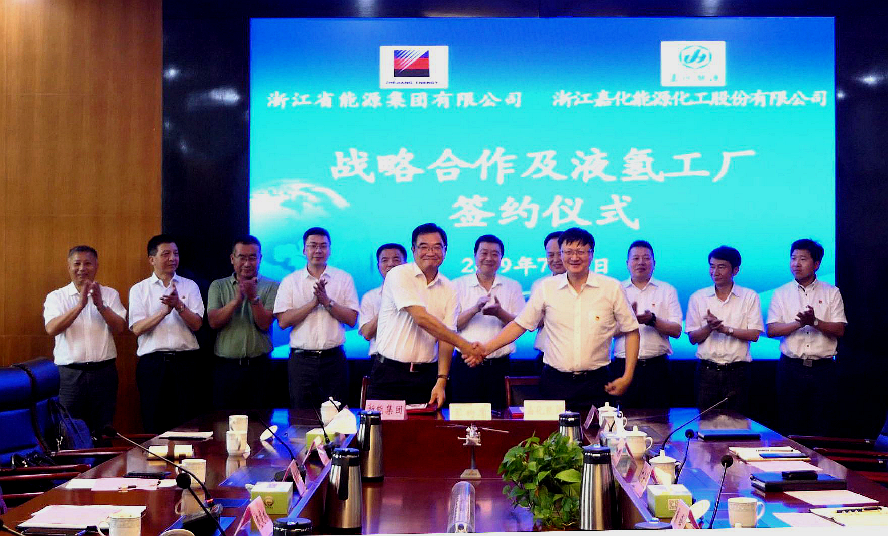 7月8日,浙江省能源集團有限公司與浙江嘉化能源化工股份有限公司戰略合作及液氫工廠項目簽約儀式在嘉興港區舉行,標志著國內首個商用液氫工廠簽約落戶嘉興港區。這是長三角區域首個工業副產氫氣液化提純制備項目,該項目規模為每小時1立方液態氫,約合每天1.5噸。此舉將進一步推動浙江省氫能產業快速發展,保障氫能穩定供應,加快省內氫能綠色交通應用推廣,更好地踐行習近平能源安全新戰略。