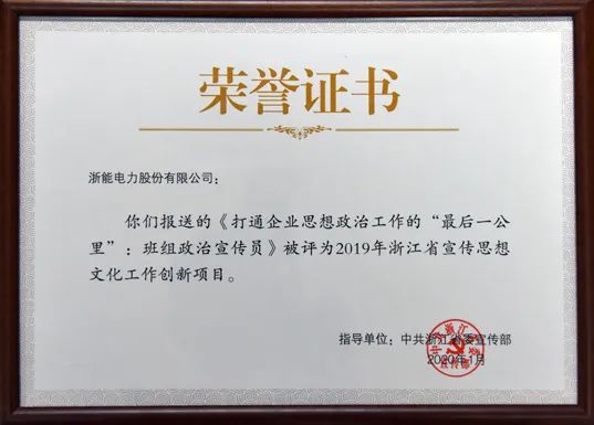浙能電力班組政治宣傳員建設(shè)獲省宣傳思想文化創(chuàng)新項(xiàng)目