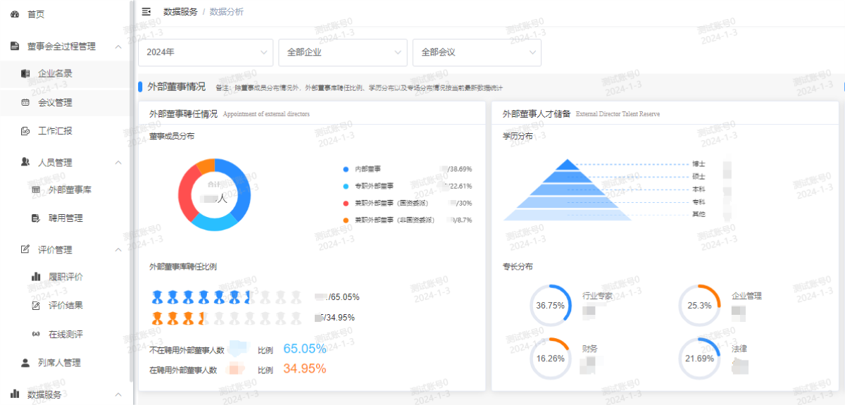 董事會(huì)運(yùn)行管理系統(tǒng)按省國資委管理要求研發(fā)部署,依據(jù)國資監(jiān)管機(jī)構(gòu)要求與企業(yè)章程,結(jié)合企業(yè)發(fā)展戰(zhàn)略和業(yè)務(wù)特點(diǎn),形成外部董事多維度畫像,深化預(yù)警提醒,前移監(jiān)督關(guān)口,可視化呈現(xiàn)各企業(yè)董事會(huì)建設(shè)、外部董事人才儲(chǔ)備等情況,實(shí)現(xiàn)預(yù)警在先、監(jiān)督有形,助力董事會(huì)規(guī)范性建設(shè)更高效、更智能。截至2023年底,董事會(huì)運(yùn)行管理系統(tǒng)已覆蓋省國資委及16家省屬企業(yè),累計(jì)錄入千余條會(huì)議數(shù)據(jù)與相關(guān)董事會(huì)議題數(shù)據(jù),以及百余條外部董事履職數(shù)據(jù),兼職外部董事庫中擁有百余位人才儲(chǔ)備。系統(tǒng)從使用便捷性、數(shù)據(jù)準(zhǔn)確性和數(shù)據(jù)實(shí)用性三方面著手,打造“好用、實(shí)用、管用”的董事會(huì)運(yùn)行管理數(shù)字化應(yīng)用。