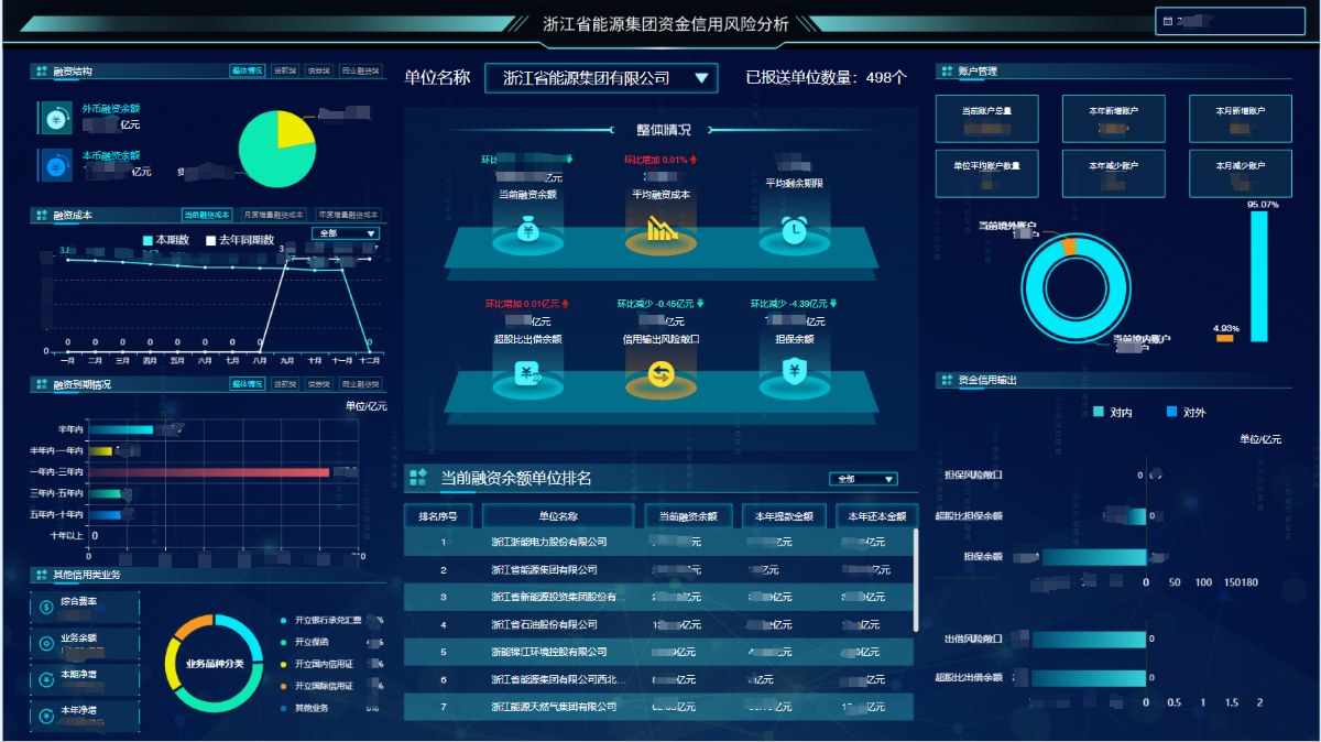 資金信用風(fēng)險(xiǎn)管理系統(tǒng)分兩部分,一是部署于省國資委財(cái)務(wù)風(fēng)險(xiǎn)監(jiān)測平臺(tái)下的資金信用風(fēng)險(xiǎn)子系統(tǒng),應(yīng)用于省國資委及各省屬企業(yè),旨在加強(qiáng)國資國企資金信用風(fēng)險(xiǎn)監(jiān)測;二是部署于浙能集團(tuán)的資金管理系統(tǒng),旨在提升資金管理精細(xì)化、集約化及智能化水平,提高資金運(yùn)營效率,防范資金風(fēng)險(xiǎn)。到目前,國資委側(cè)系統(tǒng)已完成17家省屬企業(yè)集團(tuán)推廣,企業(yè)側(cè)系統(tǒng)已完成浙能集團(tuán)約500家成員單位推廣。歷經(jīng)多次版本更迭,系統(tǒng)功能不斷完善,已實(shí)現(xiàn)賬戶全生命周期閉環(huán)管理、融資業(yè)財(cái)一體化管理、債務(wù)風(fēng)險(xiǎn)預(yù)警、資金信用輸出風(fēng)險(xiǎn)監(jiān)測、大屏智能化分析等功能,切實(shí)提升省屬國資國企資金信用風(fēng)險(xiǎn)管理水平。