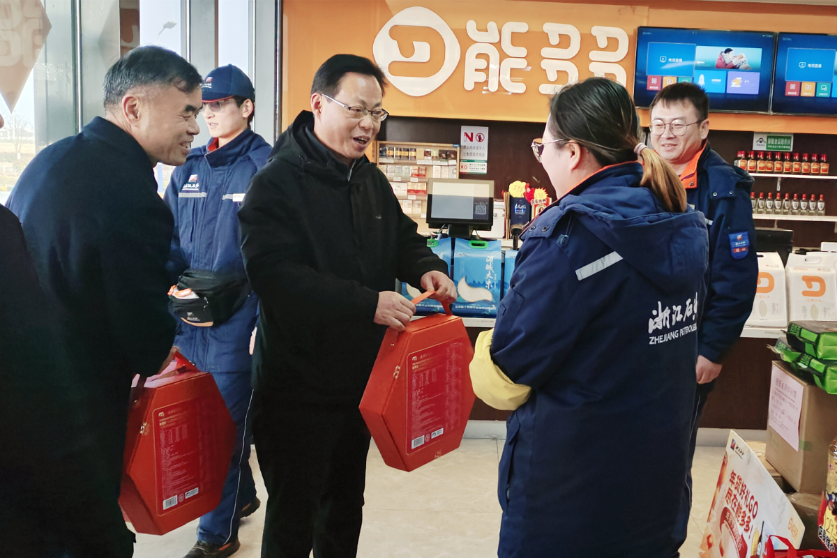 劉盛輝在浙石油平湖虹光櫻花站開展春節慰問檢查。 王建偉 攝