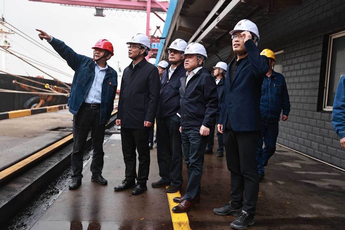 劉盛輝一行正在調研浙能港口卸船碼頭。 陳宇 攝