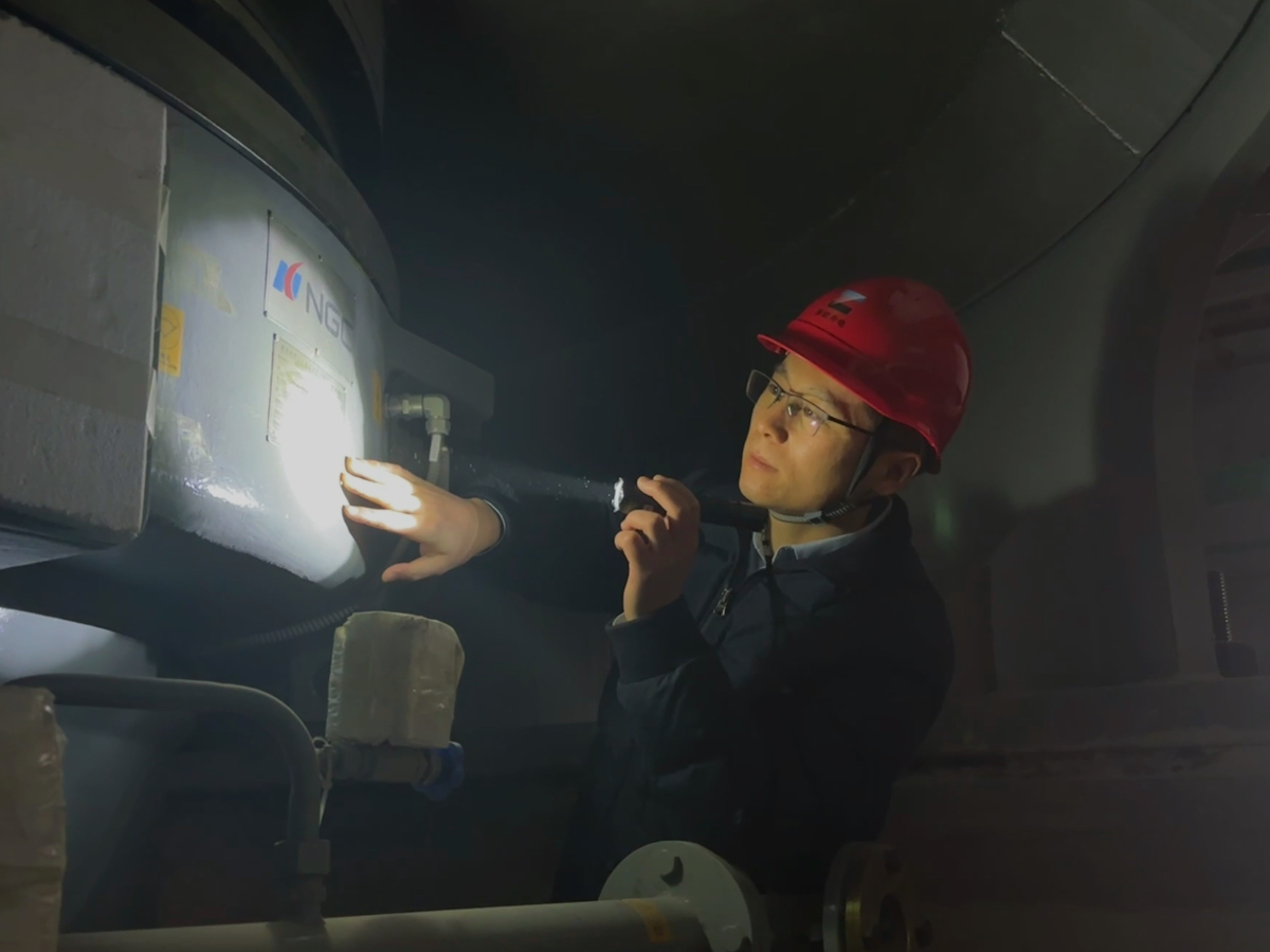 2月10日,大年初一,嘉興電廠四期工程部主任方亮到現場檢查安全施工和零部件準備工作。 王侃 攝