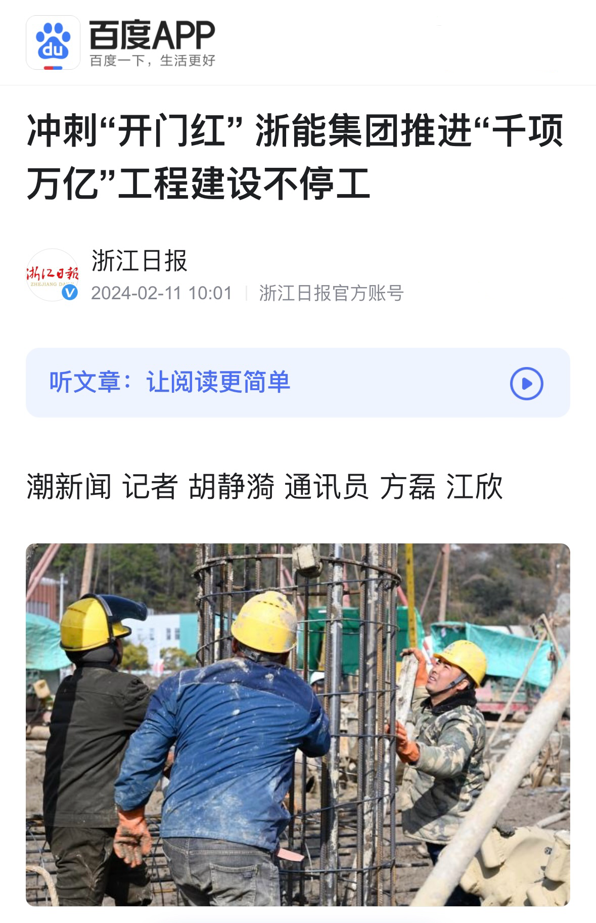 百度百家號報道《浙能集團推進“千項萬億”工程建設不停工》 百度百家號 攝